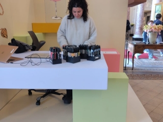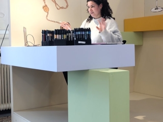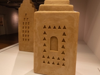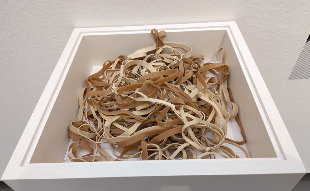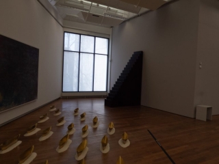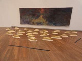 Eine Ausstellung mit aussergewöhnliche Materialen: Bienenwachs und Blumenstaub. Sehr beeindrückend.