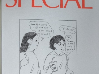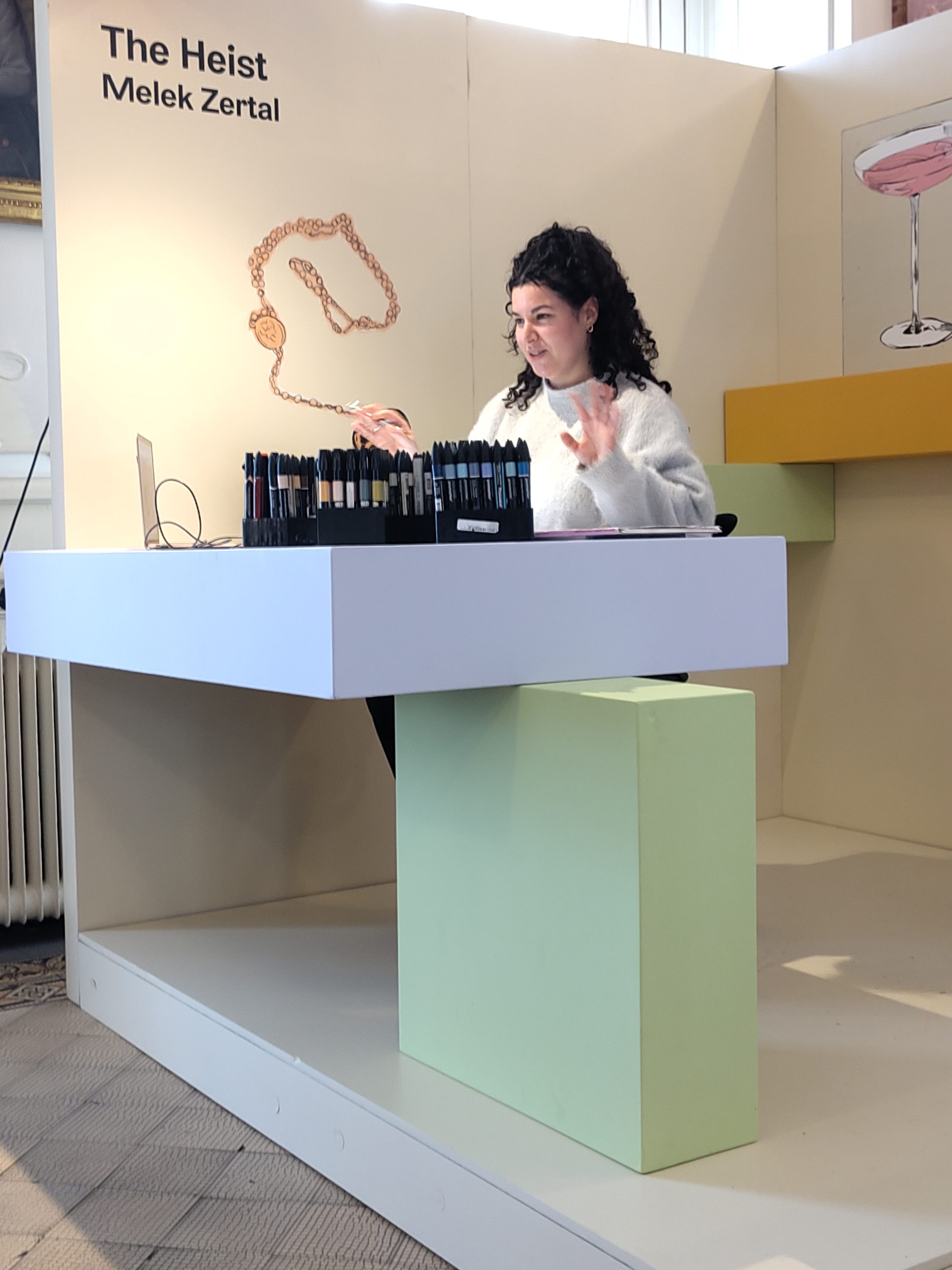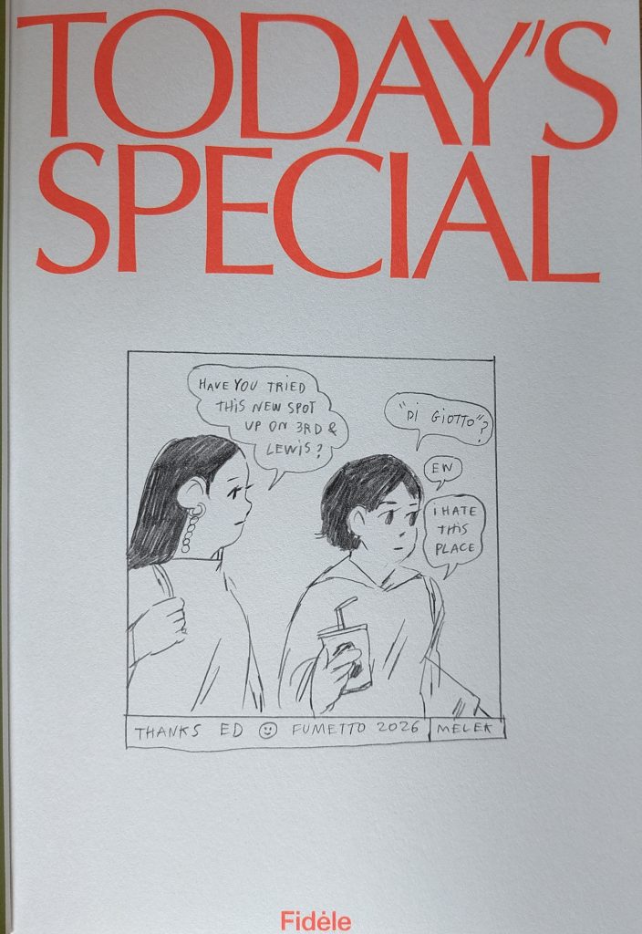 Am 3. März 2026 hat Melek Zertal eine Live-Demonstration ihrer Art zu zeichnen gegeben. Sie arbeitet mit grossen Kollektionen von Fotos; mithilfe eines Lichttisches werden die Fotos beleuchtet, mit einem halbtransparenten Blatt Papier überzogen, dann mit Tinte überzeichnet und später eingefärbt. Das Ergebnis ist wunderbar. Ich habe ihr neuestes Buch „Today Special“ gekauft, und sie hat eine schöne Widmung ins Buch eingezeichnet — so schön!