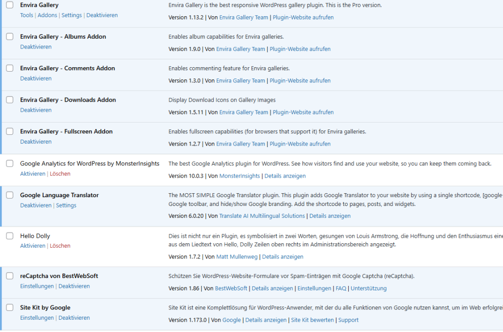 Wichtig ist einmal pro Monat zu kontrollieren, ob die WordPress Version noch aktuell ist und ob es neue Versionen der Plugins gibt.